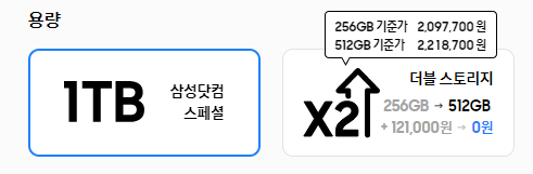 ▷사전예약기간에 구매하는 경우 256GB 구매시 동일 가격으로 512GB 업그레이드를 해준다.
