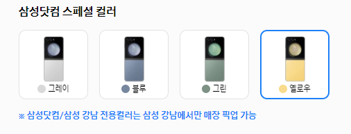 갤럭시 z 플립5는 그린,옐로우, 그레이, 블루 4가지 색상