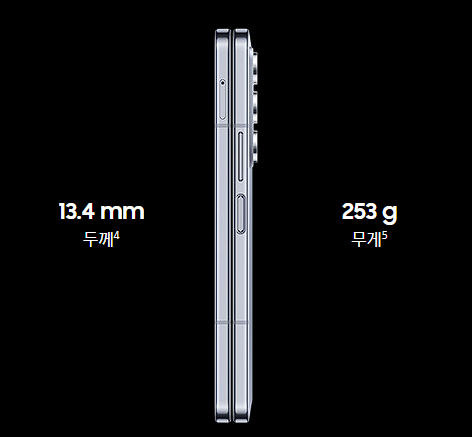 ▷ 플립을 보면 우선 외관적으로 외관 디스플레이가 커졌습니다. 핸드폰으로 게임을 하시는 분들은 플립을 사면 안됩니다. 플립 또한 경첩구조가 바뀌어서 이전과 다르게 완전히 접힙니다. 이전과 다르게 틈이 없어진 것을 볼 수 있습니다. 확실히 보기에도 깔끔해졌고 2mm가 얇아졌지만 무게는 이전과 같습니다.