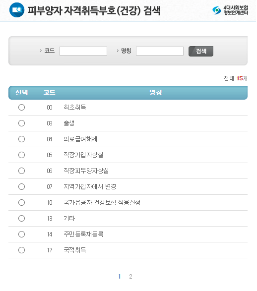 ▷ 피부양자 자격취득 부호는 돋보기를 눌러서 신청하고자 하는 사람에 해당하는 번호를 선택합니다.
