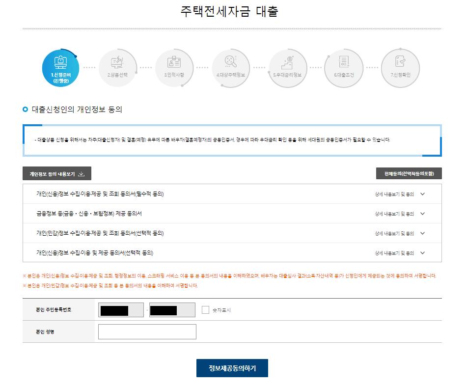 ▷ 개인정보동의를 선택하고 개인정보를 입력합니다.