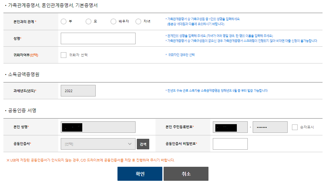 ▷ 가족관계증명서상 가족구성원 중 1인의 성명을 입력해주세요.