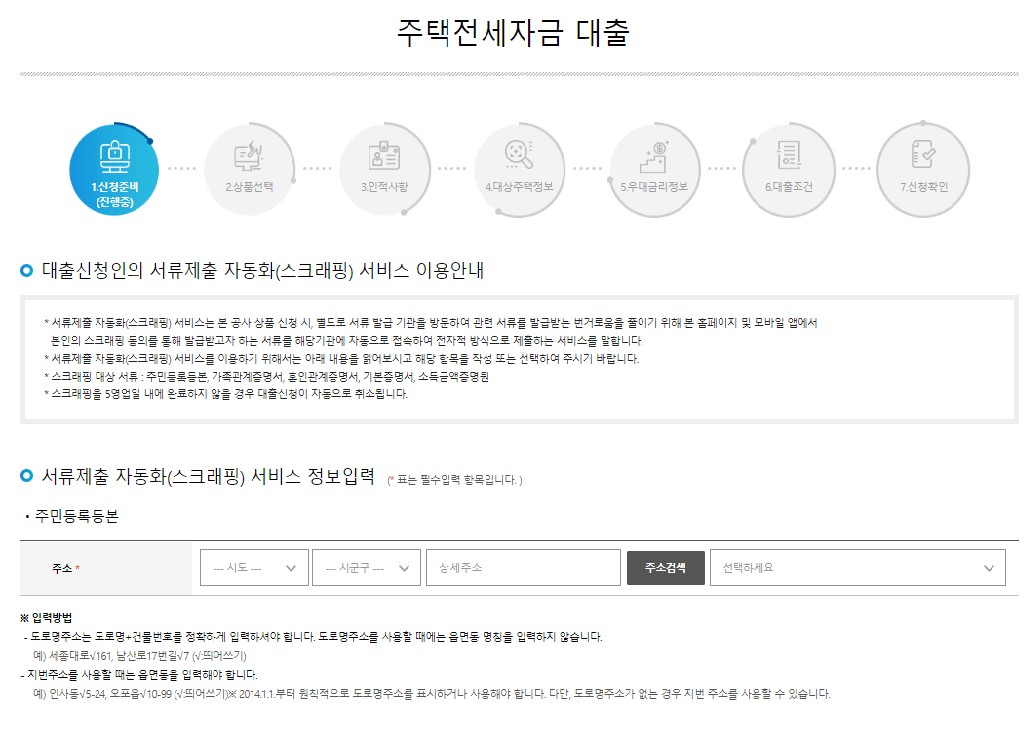 ▷ 서류제출 자동화를 위해서 본인의 주민등록 등본상 주소를 눌러서 검색하고 상세주소도 입력합니다.