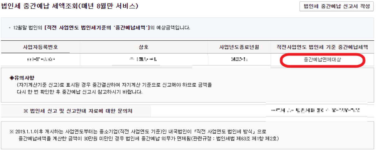 중간예납 대상 확인방법
