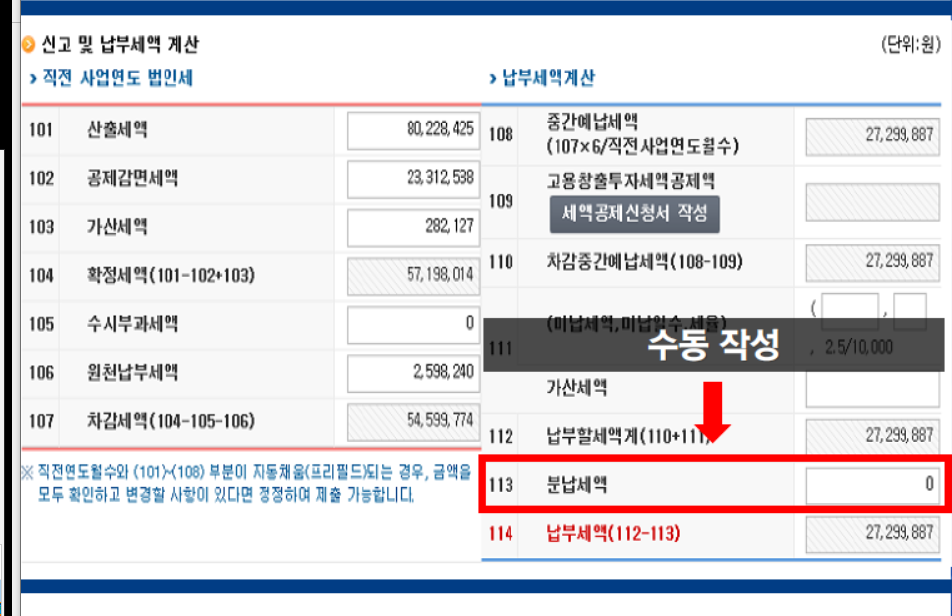 ▷ ③ 미리채움 서비스 : 직전사업연도 기준 중간예납세액 자동계산