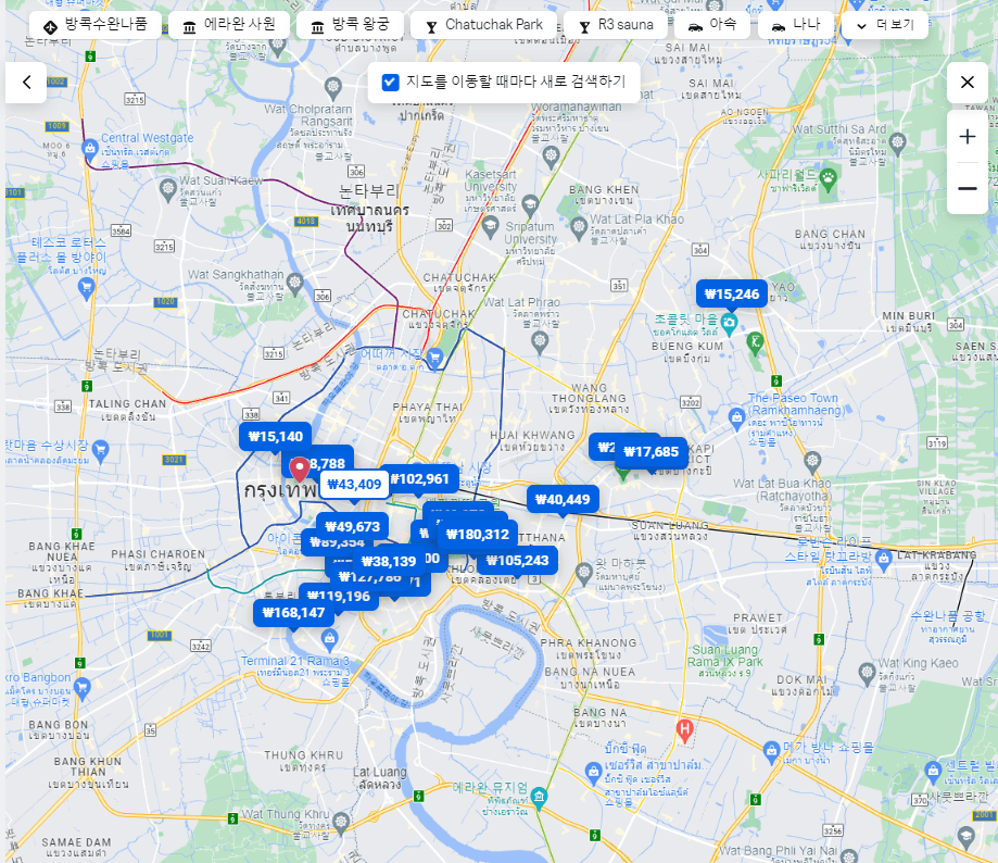▷ 오른쪽에 있던 지도입니다. 확대 축소가 가능해서 대중교통 및 야시장 등 가까운 위치를 파악했지만 시끄러운 것이 싫어서 조금 떨어저 있는 곳으로 예약 하고자 합니다.