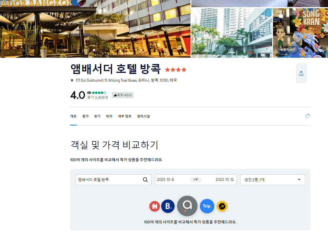 ▷ 저는 이번 여름휴가로 방콕여행을 계획하고 있는데, 티켓은 예약을 끝내서 숙소를 함께 예약해보겠습니다.