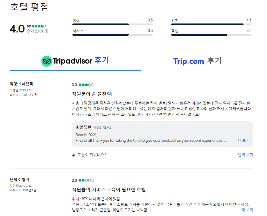 ▷ 추천순서에서 제일 위에 있던 곳입니다. 선택해서 들어가보면 4/5 점이라 높은 점수를 가지고 있고, 외관도 깨끗해 보여서 마음에 듭니다.