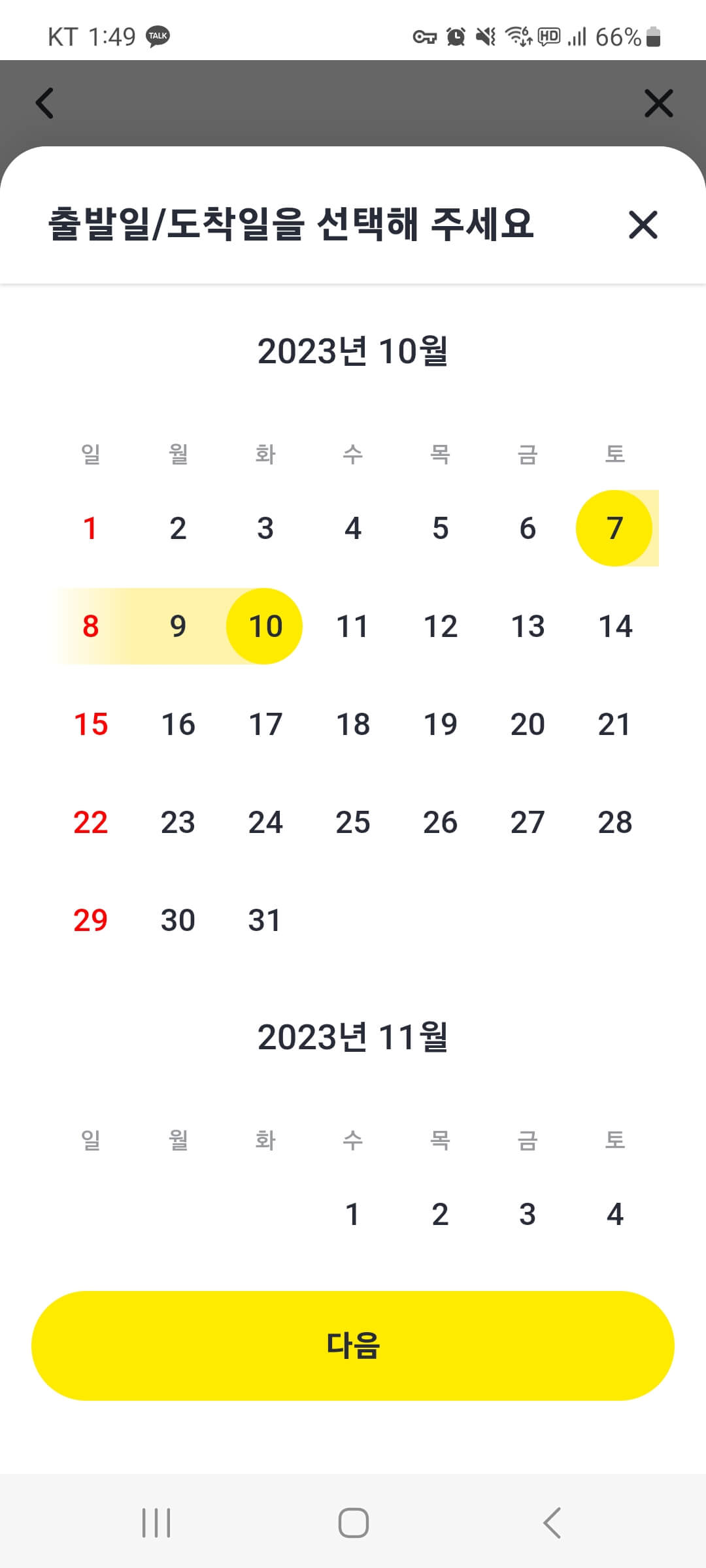 - 먼저 여행 시작 날짜와 돌아오는 날짜를 정해줍니다.