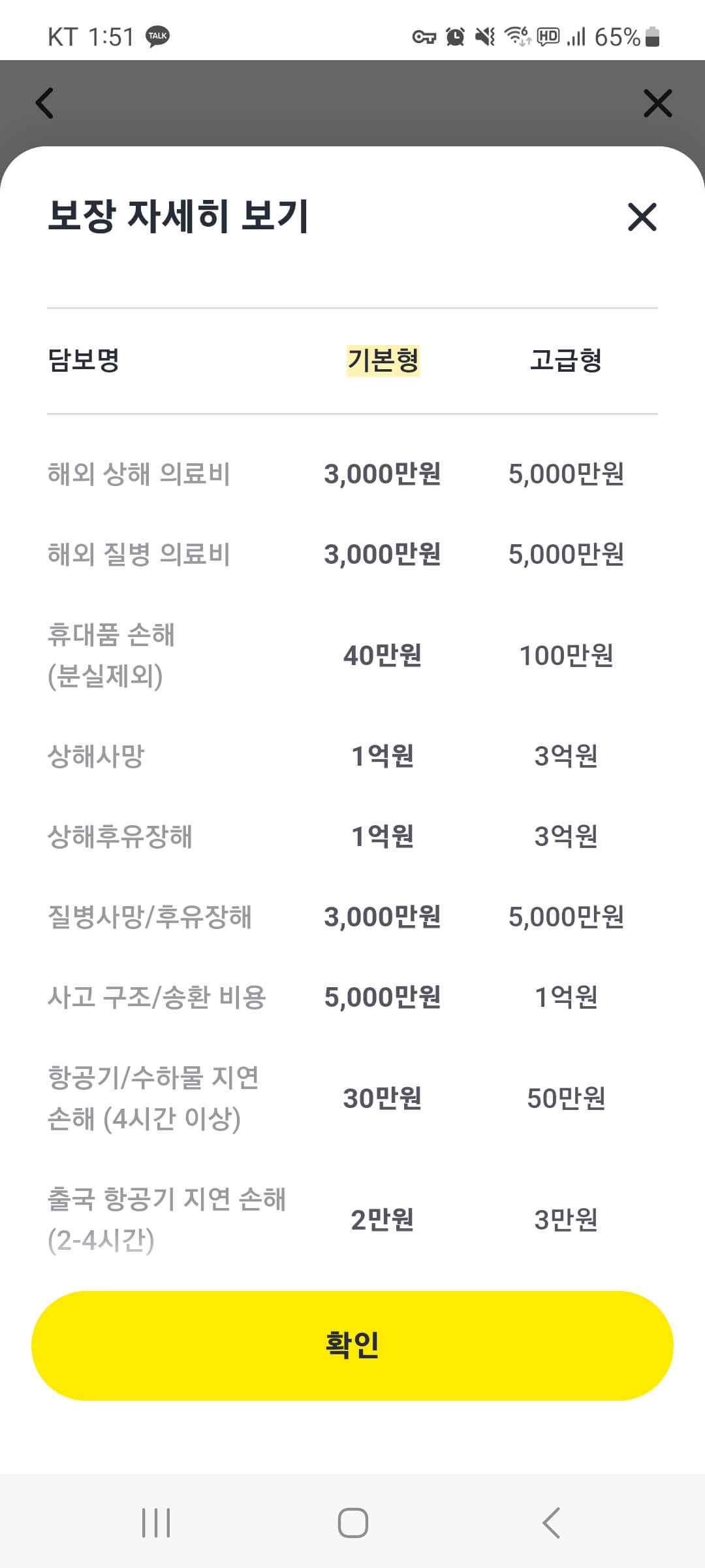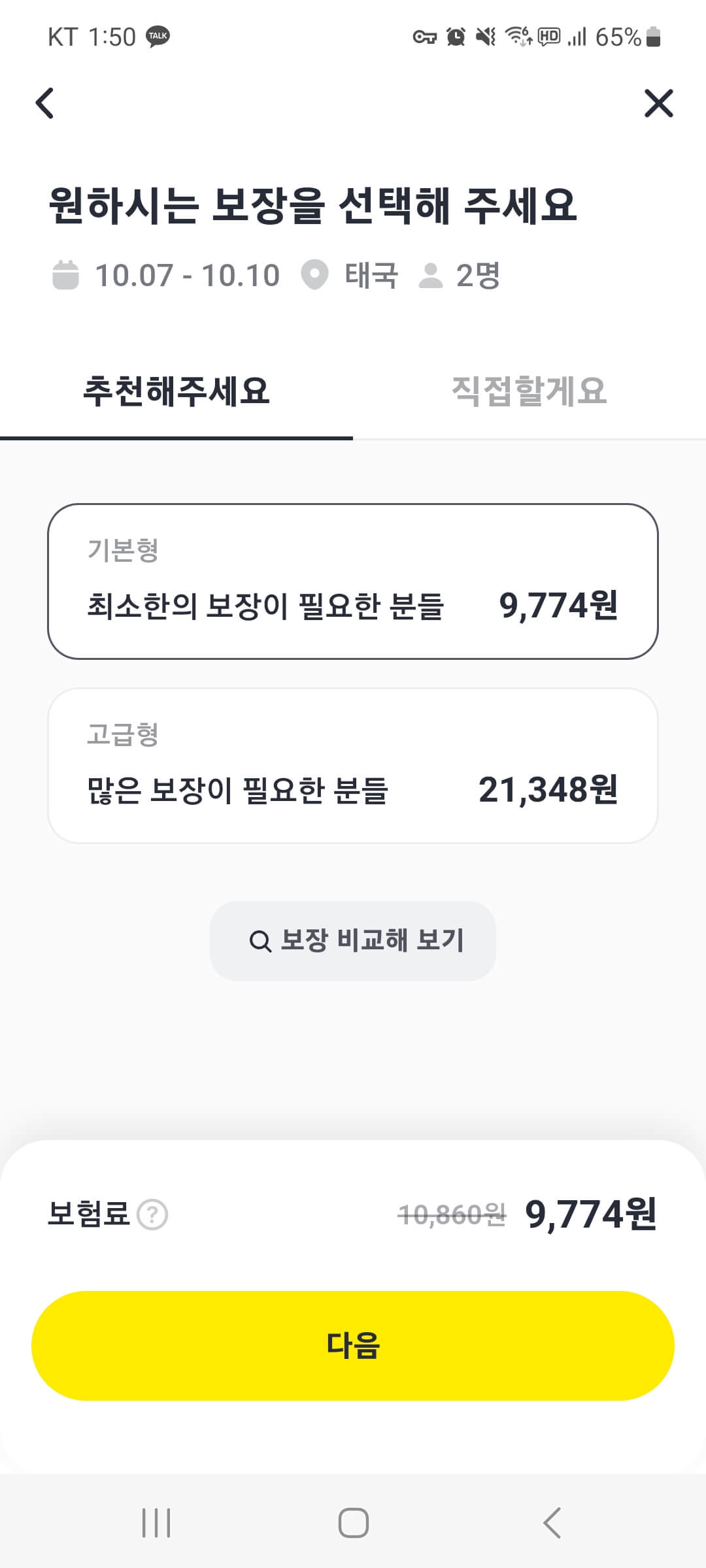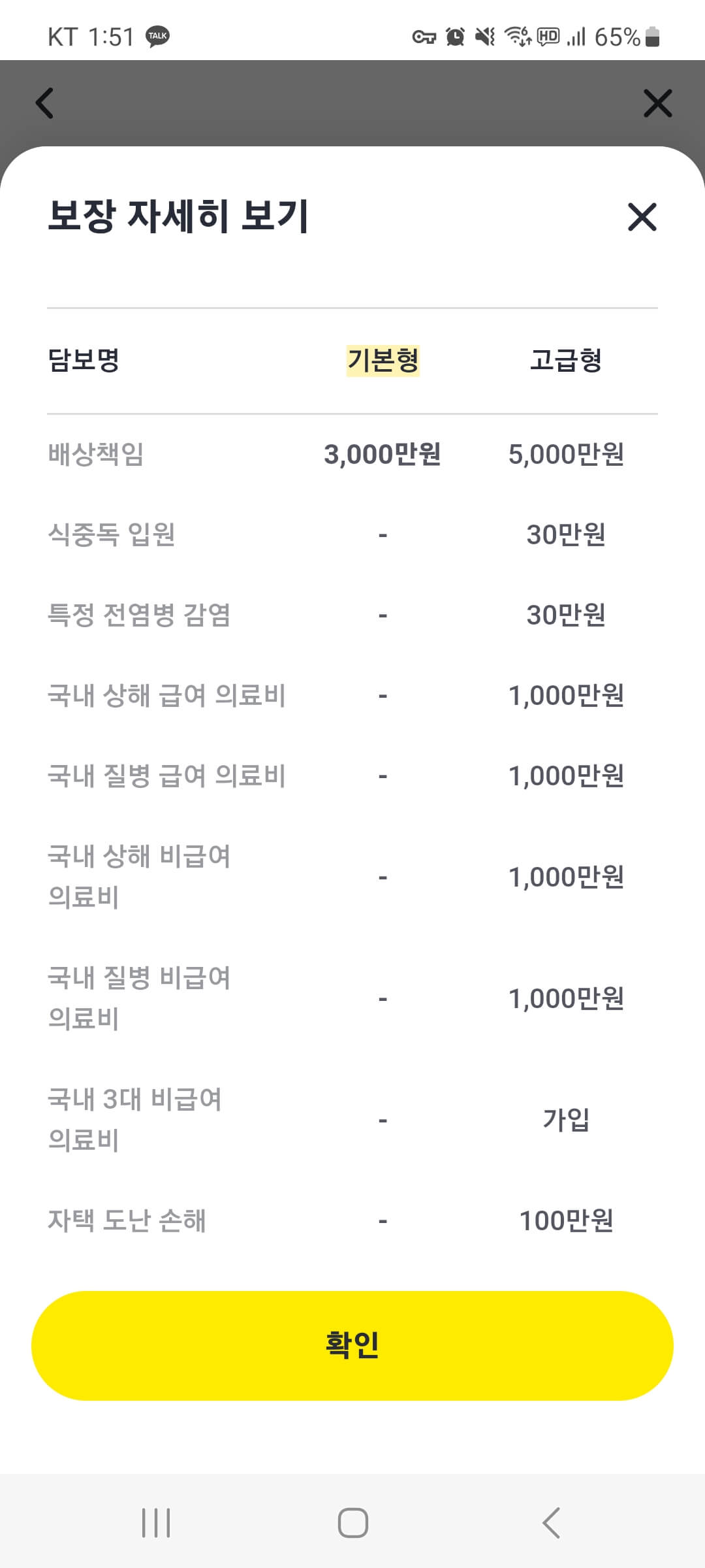 ' 보장비교하기 '를 선택해서 기본형과 고급형의 차이를 비교해서 선택하시면 됩니다.