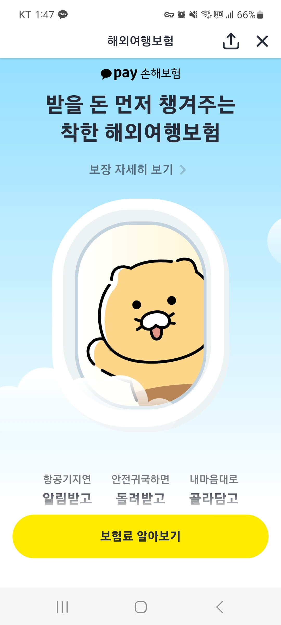 카카오 페이 여행자 보험이 출시된 지 얼마 되지 않아서, 공격적인 마케팅을 하고 있습니다.