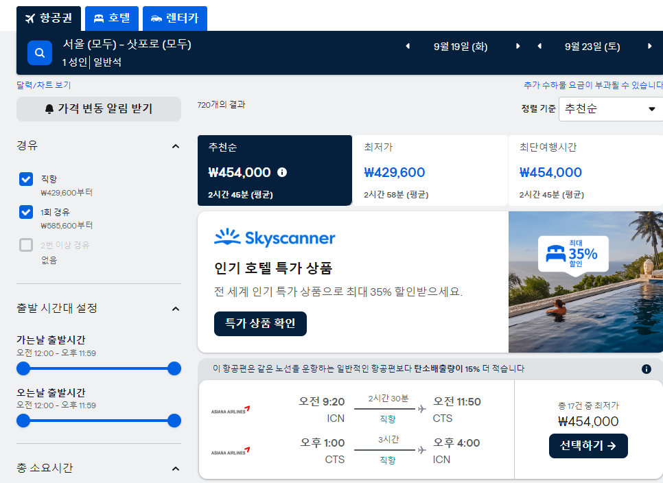 ▷ 가격 차이가 얼마나 나는지 확인해 보겠습니다. 최저가 항공권으로 비교해 보겠습니다.