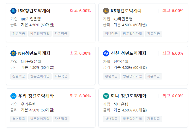 ▷ 다음은 해당 청년도약계좌 가능 은행입니다.