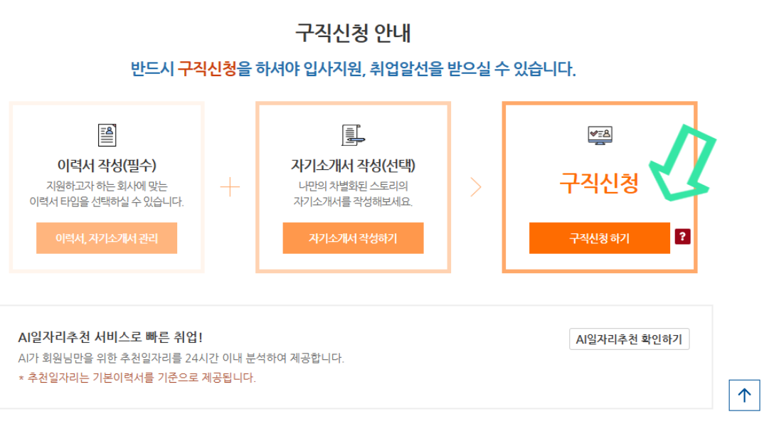구직신청을 해야합니다.