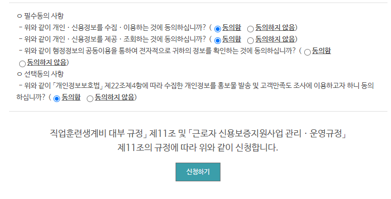▷ 이후 필수 동의 사항에 동의함으로 선택하고 신청하기 클릭