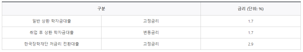 ※일반상환 학자금대출은 고정금리, 취업 후 상환 학자금 대출은 변동금리